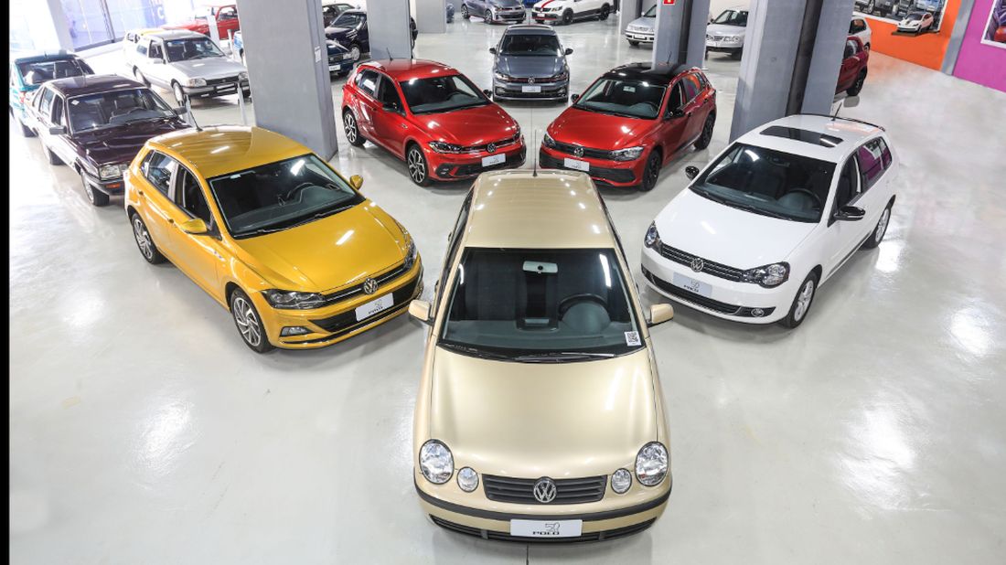 Polo 50 años: Para celebrar las cinco décadas del legendario hatchback compacto, el Garage exhibe una colección de modelos brasileños. La producción nacional comenzó en 2002.