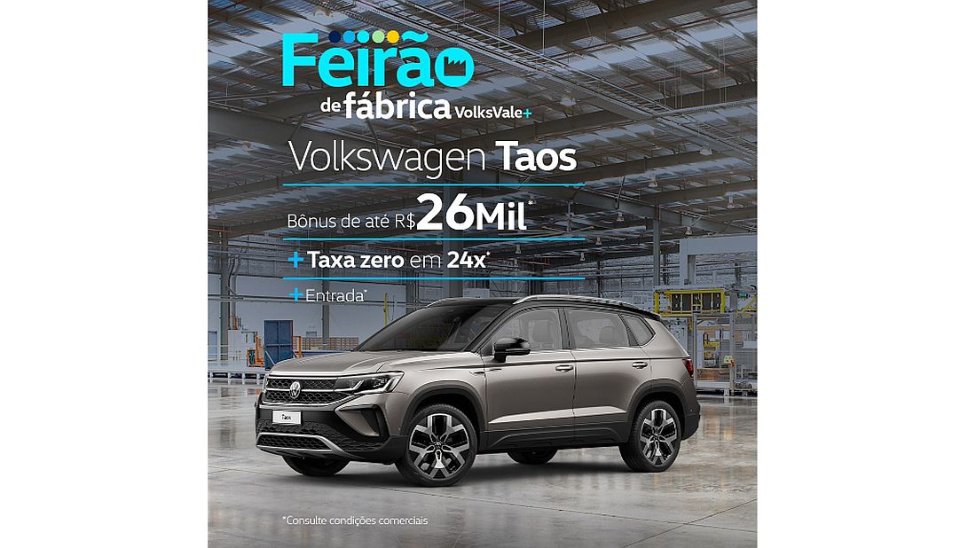 Taos: bono de hasta R$ 26 mil* + tarifa cero en 24 cuotas* + entrada